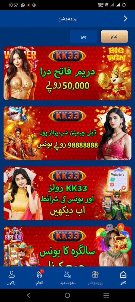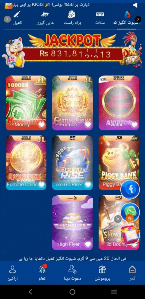 The KK33 Game provides an easy deposit and withdrawal of your funds due to been liked with the local transactional application like easy paisa and jazz cash. You can transfer your money in matter of seconds without any such formalities.
